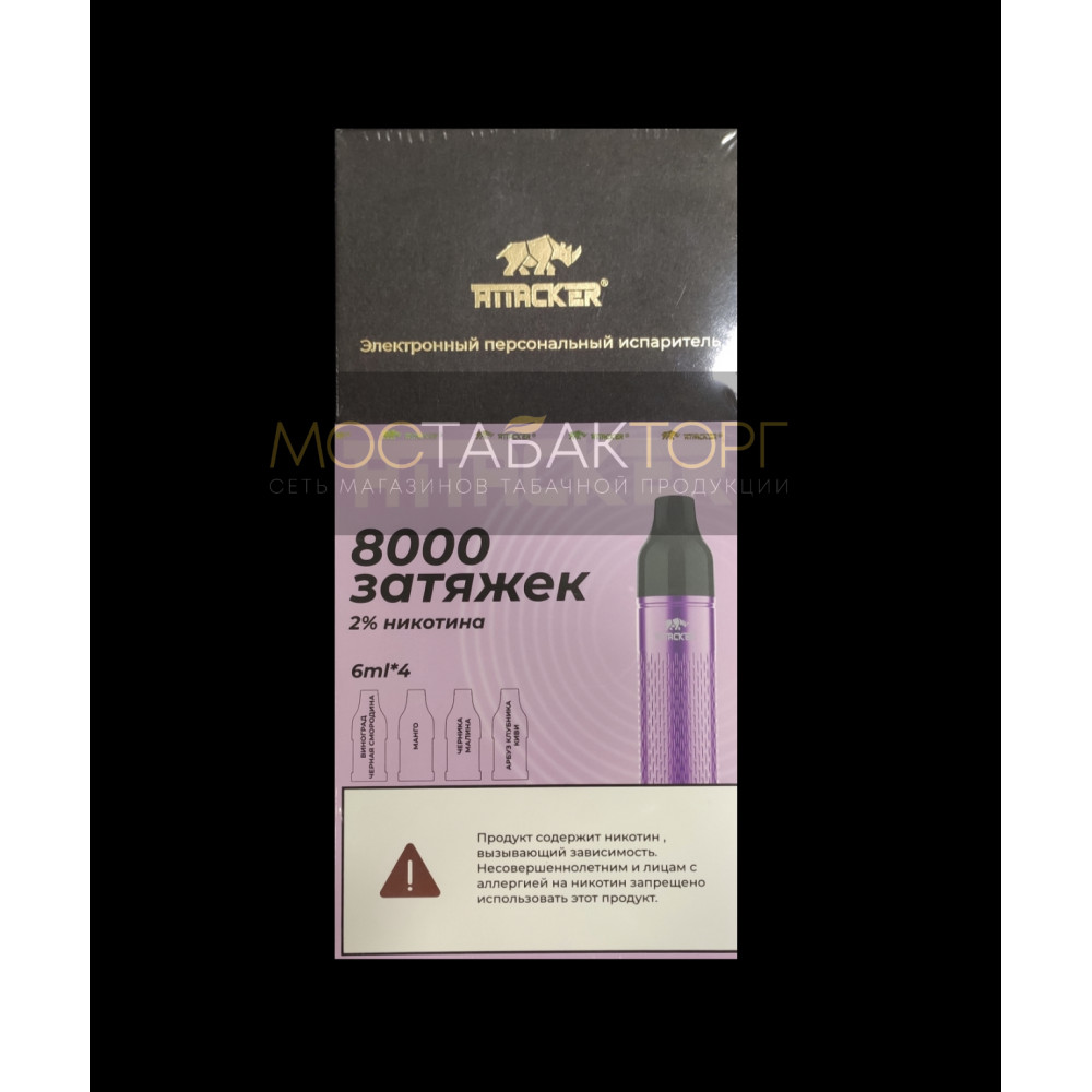 Набор Attacker K-One 8000 Фиолетовый (вкусы: Виноград Черная Смородина, Манго, Черника Малина, Арбуз Клубника Киви)