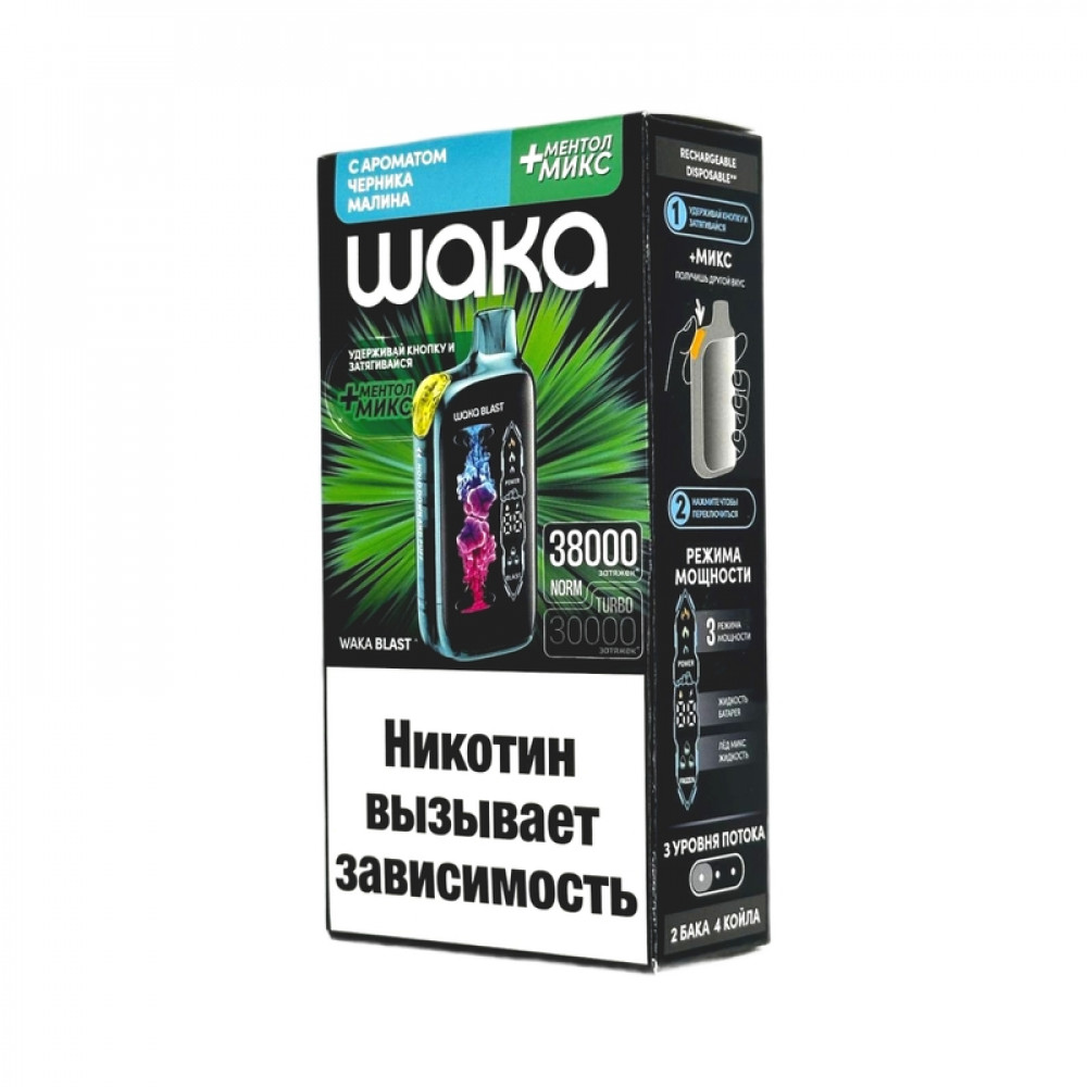 WAKA BLAST 38000 Hard - Черника малина + ментол микс - купить в Муроме