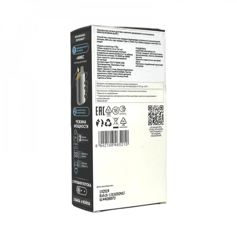 Технические характеристики WAKA BLAST 38000 Hard - Клубника + лимонная содовая
